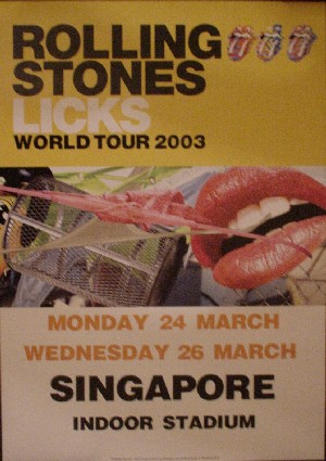 The Rolling Stones Licks World Tour plays its last Singapore show tonight at 8 pm at the Indoor Stadium. Tickets available from Sistic (tel: 6348-5555 or www.sistic.com.sg).